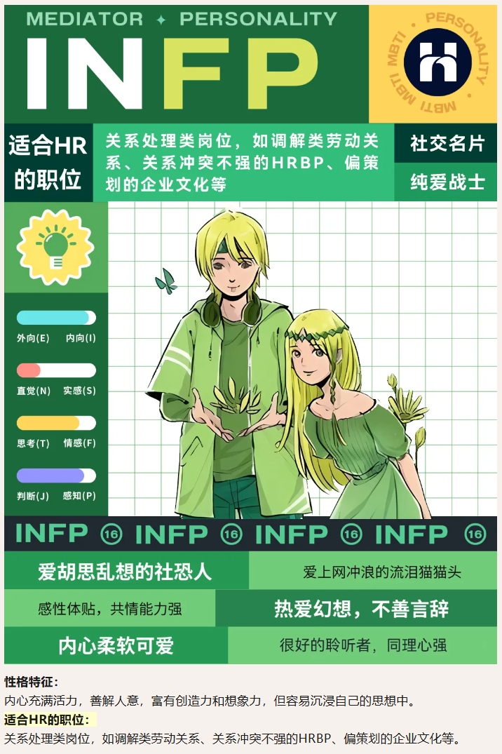 关注公众号【幻影体育网页版人力集团】,在消息框发送关键词【职业测试】即可免费测试你的MBTI,滑动文章在以下16个类型对号入座,了解适合自己的人力资源岗位~。